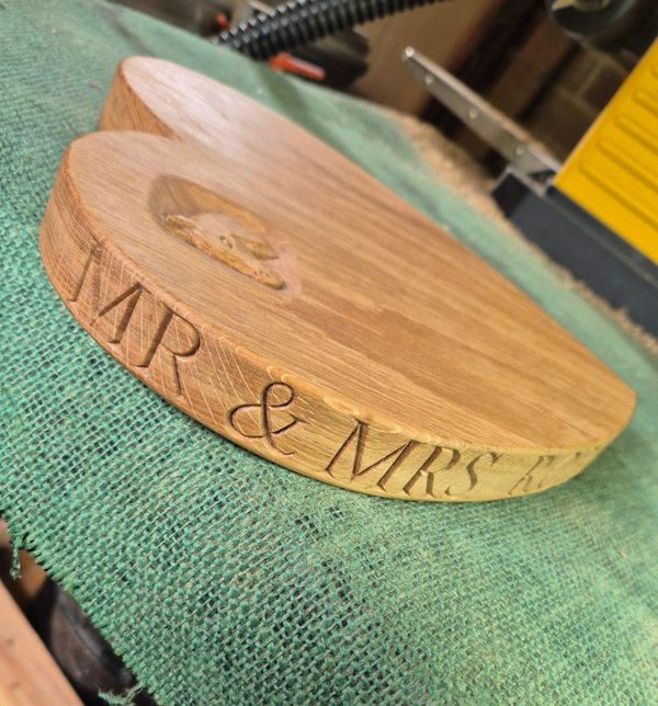 A beautiful bespoke addition to any home. This solid oak board is universal, from a chopping board to a personalised gift for a specical occasion. We have even had these boards used for a wedding cake stand!