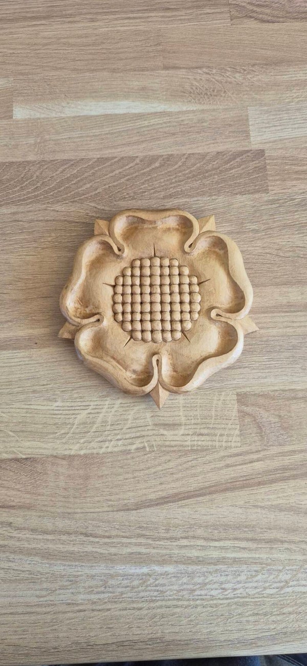 Crafted with precision and attention to detail, this hand-carved Yorkshire rose in lime wood is a beautiful and unique piece. Each intricate design is carefully chiselled by skilled artisans, showcasing the natural beauty of the wood. This artisan crafted item is a perfect addition to any home, bringing a touch of elegance and charm to any space.